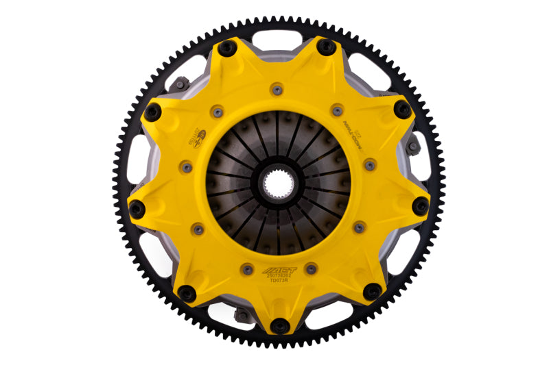 T1SS-N06 Mod-Twin 225 HD Sprung Street Kit is designed for high powered AWD street cars. It unites uncompromised pedal feel, durability, engagement quality with very high torque capacity by combining twice the organic friction surfaces with an ultra-durable spring center Mono-Drive hub in a completely modular design. Each diaphragm spring endures an exclusive four-stage heat treating process providing a consistent light pedal feel. Steel-backed Friction Plates with high quality organic friction materials deliver stable friction coefficient, good heat capacity and long clutch life. These Friction Plates uniformly transfer torque to the Mono-Drive sprung hub assembly which extends input shaft life and reduces driveline shock from torsional vibration. This kit includes a CNC-machined and dynamically balanced flywheel, pressure plate cover, diaphragm spring, face, puck-style ceramic friction plates, sprung Mono-Drive hub assembly, floater, patented Monoloc Collar, release bearing, alignment tool and pilot bearing (if needed). Mod-Twin clutches are fully rebuildable and most components can be ordered separately.