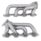 These BBK Performance shorty tuned Length exhaust Headers are designed and constructed as direct fit replacements for all 14-18 Chevrolet GM 5.3 6.2 Full Size Truck applications. Each header is manufactured with 1-3/4 in. CNC mandrel bent tubing that offers unrestricted exhaust flow for increased horsepower and torque over factory OEM manifolds. BBK tuned Length headers offer improved scavenging waves for better combustion, which leads to improved performance and fuel economy over stock or equal Length headers. As with all BBK Performance exhaust headers they feature a 3/8 in. laser cut flange for additional strength and a guaranteed leak free fit. All headers are robotically and precision hand welded and then pressure tested to ensure years of reliability and performance in the real world. All BBK exhaust headers are available in a titanium ceramic or polished silver ceramic coated finish and include new exhaust header gaskets, header bolts and hardware to complete the installation.