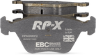 RP-X(TM) Racing Front Brake Pads by EBC(R). EBC Racings RP-X compound is an ultra-high performance track and race pad designed for performance vehicles driven hard on track and for dedicated race cars. RP-X has a very stable friction coefficient of 0.55 mu up to and beyond 850 C, making it an excellent performer for even the most demanding vehicle applications.