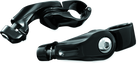 These cruise mounts with positive locking Quick Clamps offer an incredible range of adjustability. The entire assembly may be moved up or down on the engine guard. The arm and footpeg may be further adjusted along a vertical or horizontal arc. A unique clevis permits angle adjustment of the footpeg. The heavy-duty Quick Clamp and sturdy offset arm ensures that the footpegs will clear fairing lowers and will stay where you put them.