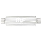 The MagnaFlow 7in. Round Straight-Through Performance Exhaust Muffler 12770 brings our world-famous exhaust sound and dyno-proven performance to your ride in a weight-optimized 7x7x14in. package with a premium satin finish. The straight-through free-flowing design of this round-bodied muffler's reversible, universal 4/4in. diameter inlet/outlet layout enables versatile installation options to match the spacing requirements of your vehicle. Due to the cutting and welding involved, professional installation is highly recommended. Internally, 12770 utilizes a perforated stainless steel core wrapped in stainless steel mesh and acoustic fiber fill to achieve a powerful, resonant tone. This muffler is made of durable, corrosion resistant stainless steel and produced using cutting-edge CNC precision robotic manufacturing techniques, all backed by MagnaFlow's limited lifetime construction warranty.