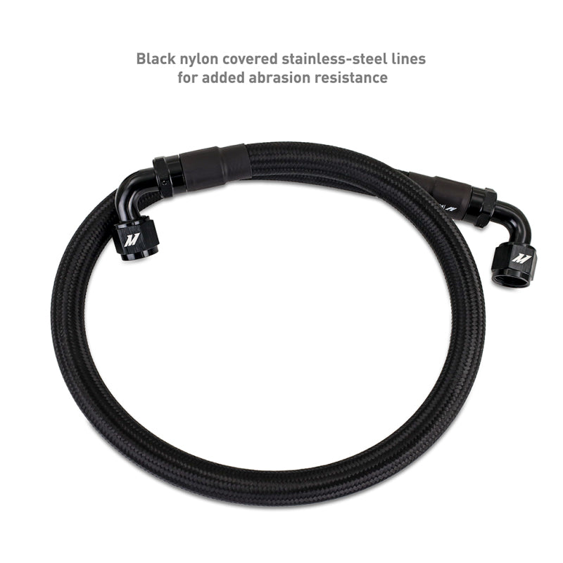 and when you spend 20 minutes banging off the limiter and sliding sideways, airflow through the radiator is at a minimum, while heat buildup is at a maximum. The solution is a supplemental cooler whose only job is to cool the engine oil. Luckily, we’ve developed that solution.----This Mishimoto performance oil cooler kit for your 2022+ Subaru BRZ or Toyota GR86 adds a robust 19-row external oil cooler to the otherwise anemic stock system. This cooler takes the load off your engine coolant and adds 0.75 quarts of oil to the system for even greater cooling and lubricating performance. In thermostatic spec, this kit eliminates the liquid-to-liquid cooler, reducing failure points and allowing each system to operate completely independently for maximum performance. For dedicated race cars that need full cooling, right away, the non-thermostatic option retains the stock cooler to help get oil temps and viscosity in operating range fast.----Our direct-fit mounting bracket places the oil cooler front and center in the grille for maximum airflow, while the -10AN braided-steel lines ensure constant flow through the system. The included heat shielding sleeve adds another layer of protection against abrasion while keeping engine bay heat out of the oil.----This performance oil cooler kit includes everything you need for installation, so you can get your 2022+ BRZ or GR86 back on the street or track in no time. Like all Mishimoto products, this kit is backed by our Mishimoto Lifetime Warranty.