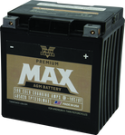 The Twin Power™ Premium MAX Factory-Activated AGM Batteries are the most advanced lead-acid type battery available. Supplied factory-activated, filled, sealed and charged, these batteries offer extreme vibration resistance, heavy-duty terminals and higher cranking amps. The Premium MAX batteries feature patent-pending embedded brass nuts, additional cold-cranking amps, better charge recovery capability and superior grid components.