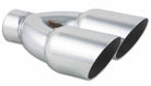 Vibrant Performance Dual Outlet, Weld-On Exhaust Tips are manufactured from 304 Stainless Steel for optimum corrosion resistance. They are available with either dual round or dual oval outlets and a variety of different outlet edge profiles. All Vibrant Performance dual outlet tips are 10 in. long and are offered with inlet diameters ranging from 2.25 in. to 2.5 in..